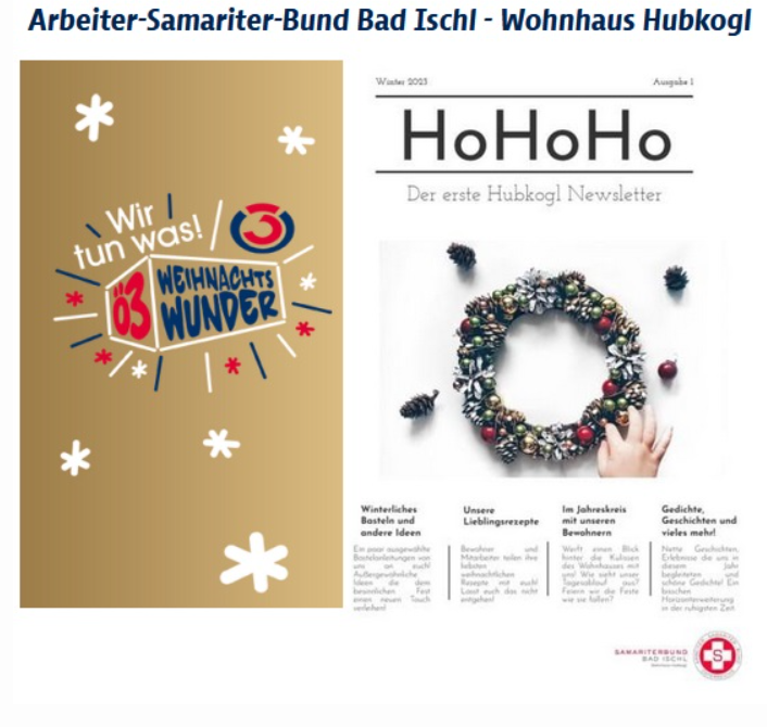 Die Bewohner*innen des Wohnhauses Hubkogl haben sich beeilt, den 1. hausinternen Newsletter fertig zu stellen um beim Ö3-Weihnachtswunder 2023 teilnehmen können.